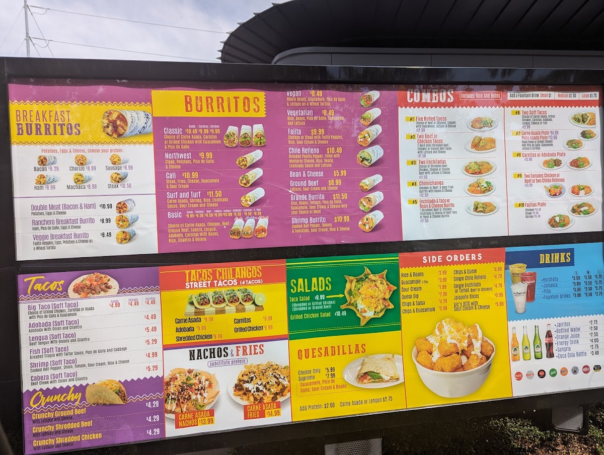 The menu features hearty options like the carne asada burrito and chimichanga, which are satisfying choices for lunch or dinner. Lighter bites such as quesobirria tacos and Cali tater tots complement the bold flavors, while refreshing drinks like mango smoothies and fresco de flor de jamaica provide a cool counterpoint to the savory offerings.